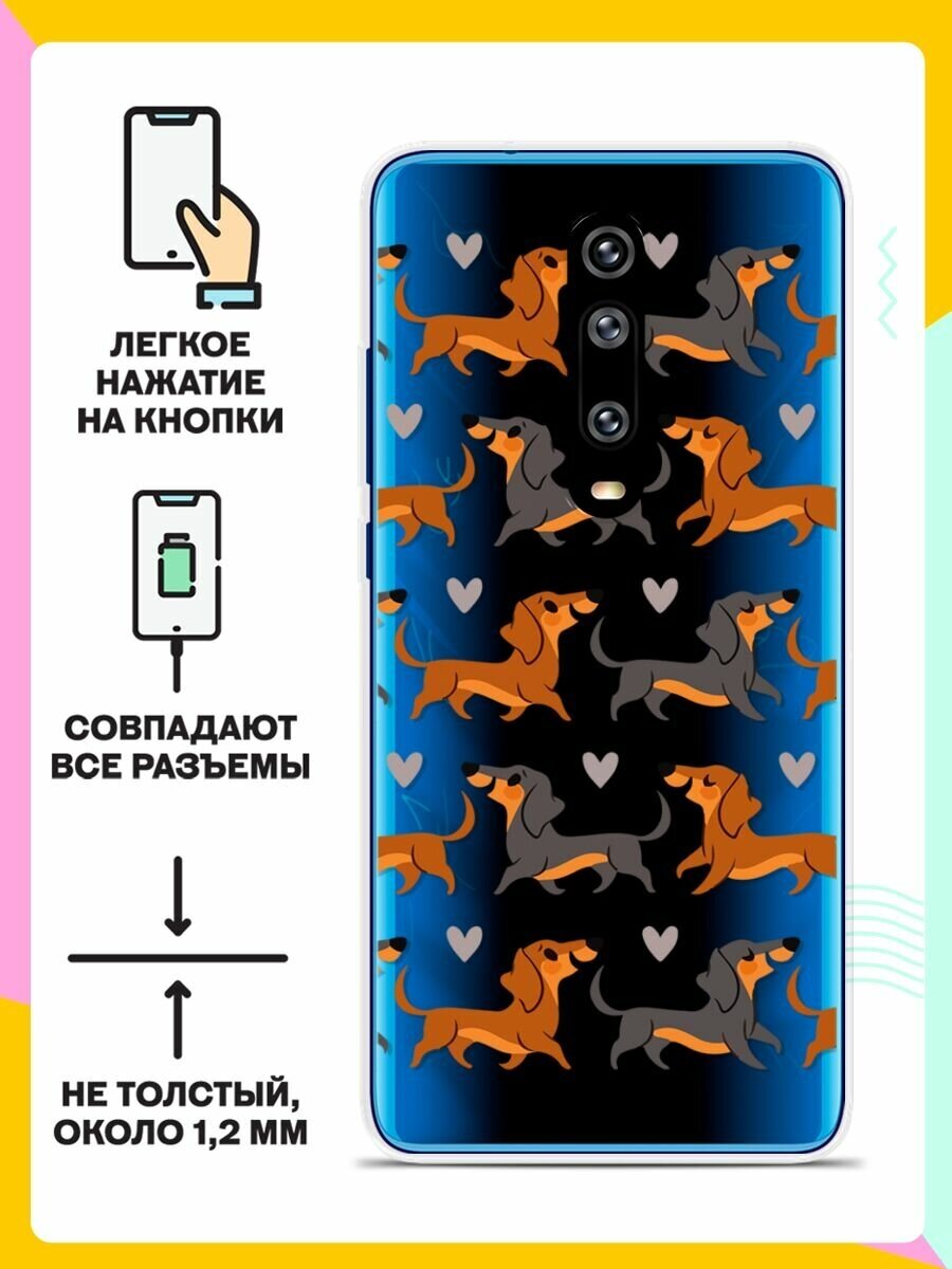 Силиконовый чехол на Xiaomi Mi 9T Pro Узор из такс / для Сяоми Ми 9Т Про интересное: