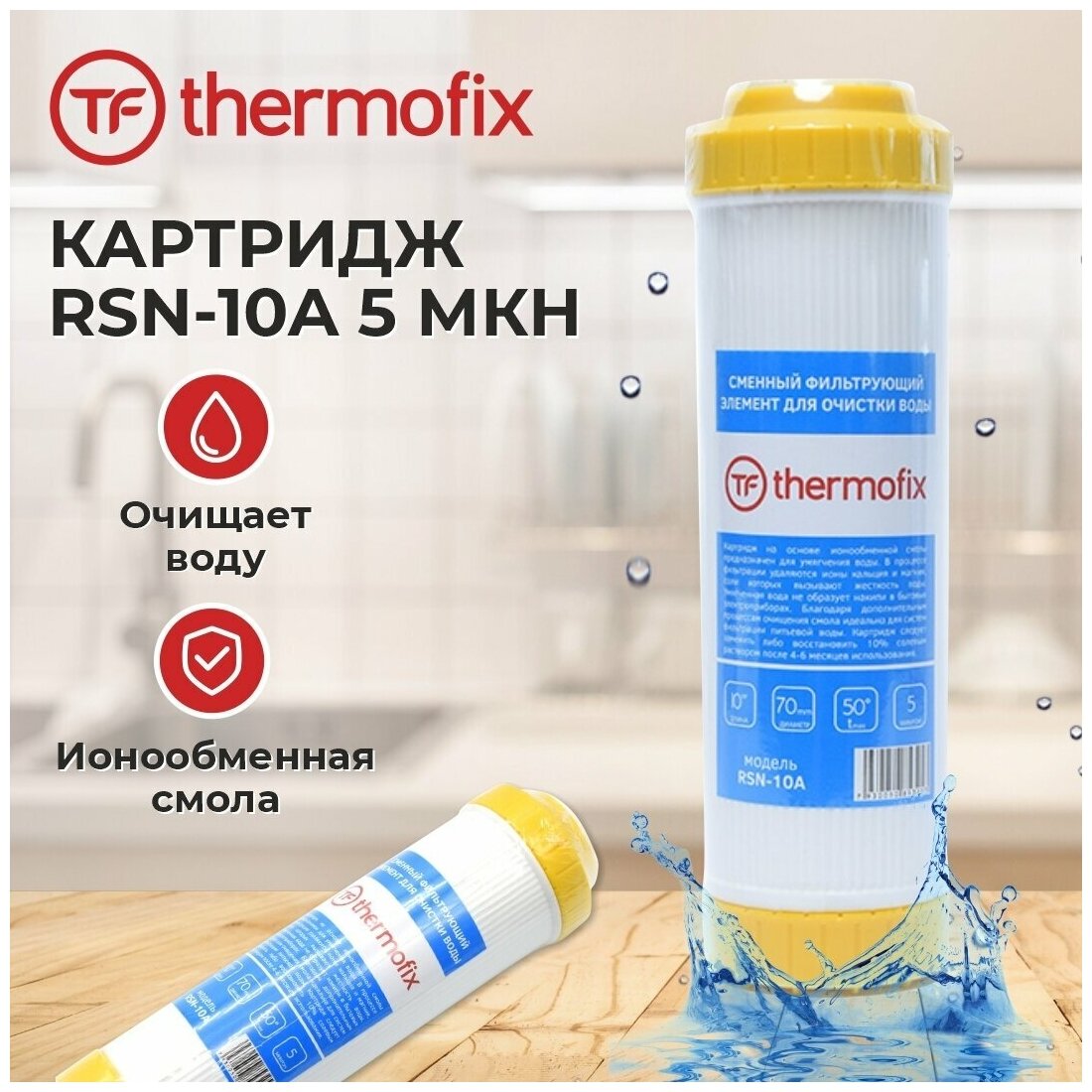 Картридж для фильтра 10 шт. "Thermofix" (10", ионообменная смола, 5 мкн) (RSN - 10A) /для очистки воды / запасной картридж Slim Line