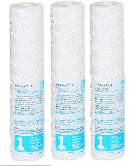 Картридж для фильтра сменный ITA РS-10 -10микрон (Комплект 3шт) Пневмотекстурированная полипропиленовая нить встречной скрутки интересное:
