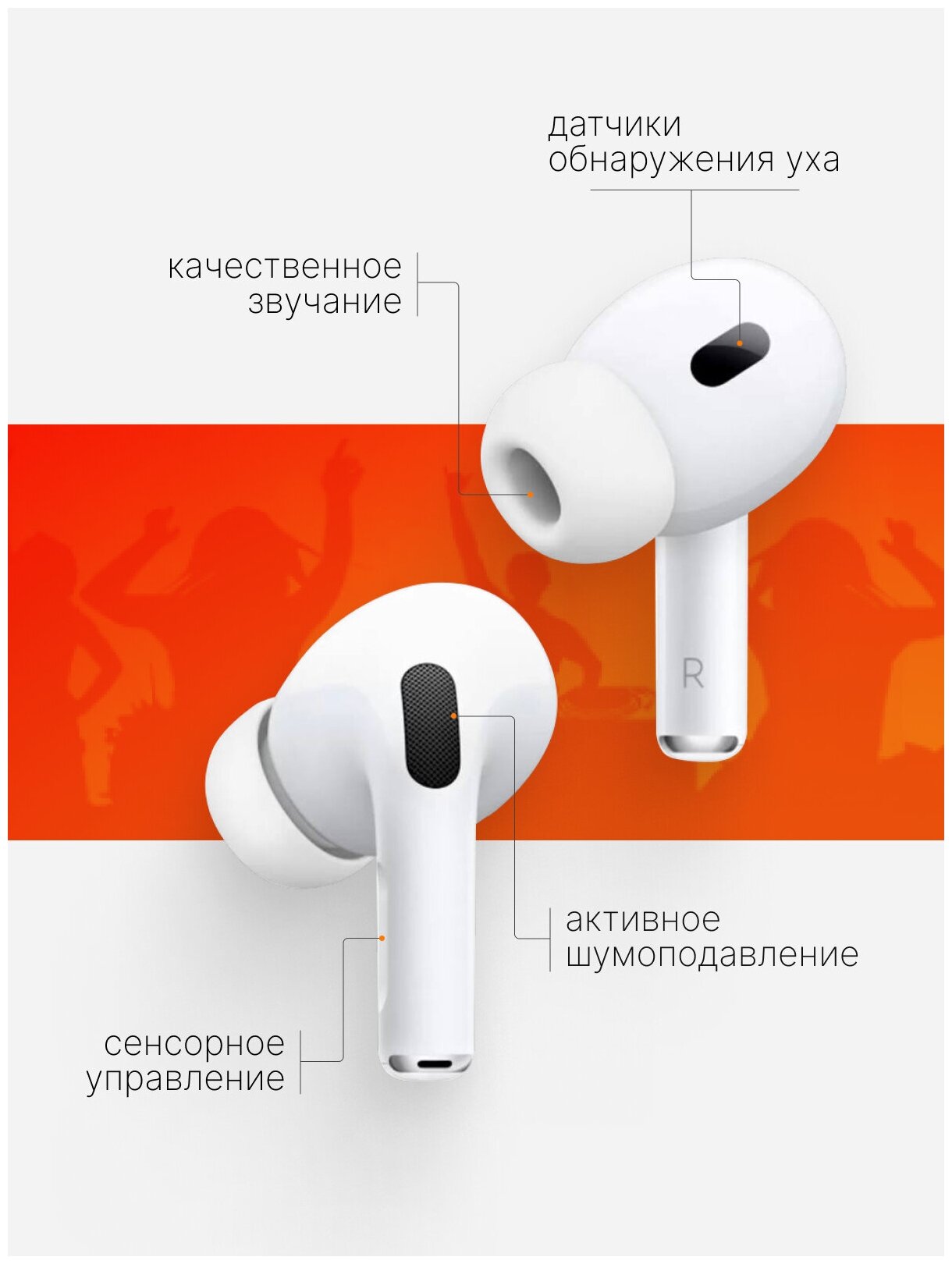 | Дополнительная информация | кейс для зарядки поддерживает технологию MagSafe; функция «Совместный доступ к аудио» позволяет слушать песни, подкасты и любое другое аудио через две пары наушников AirPods; адаптивный эквалайзер; система выравнивания давления; пространственное аудио и функция динамического отслеживания движений головы; датчики: сдвоенные направленные микрофоны, внутренний микрофон, двойные оптические сенсоры, акселерометр распознавания движения, акселерометр обнаружения голосовой активности, датчик нажатия |