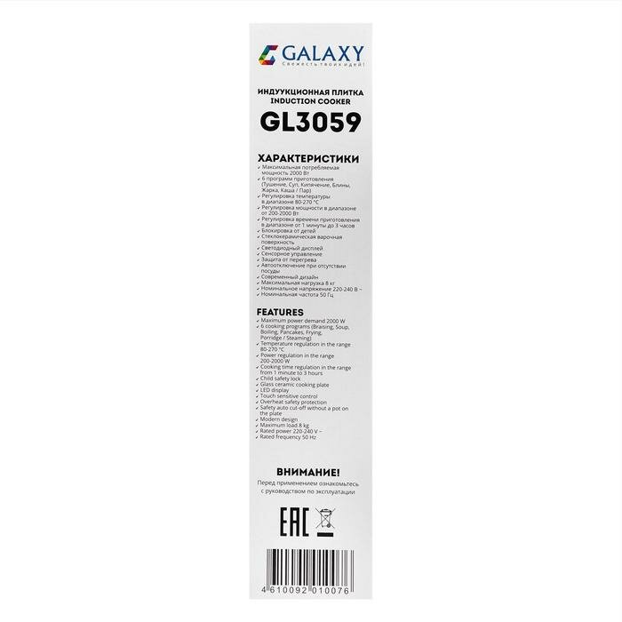 Купить Плитка индукционная Galaxy GL 3059, 2000 Вт, 1 конфорка, чёрная