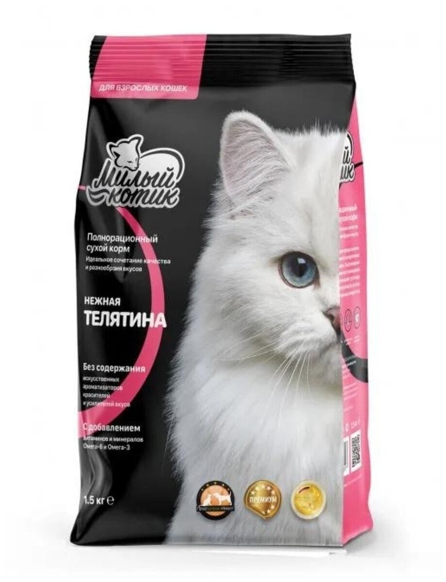 Милый Котик сухой корм для кошек "Нежная телятина " 1,5 кг