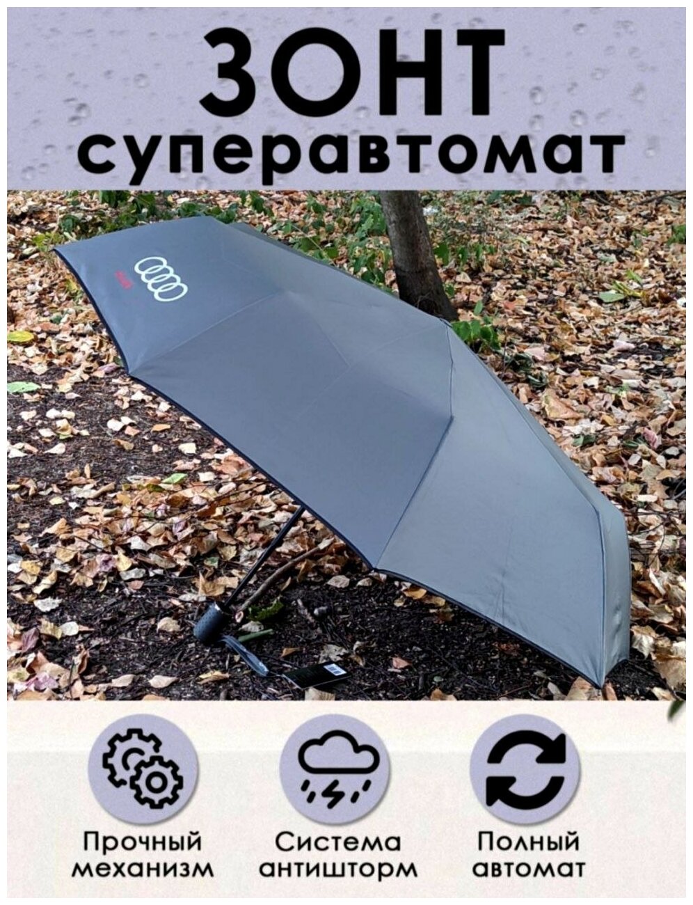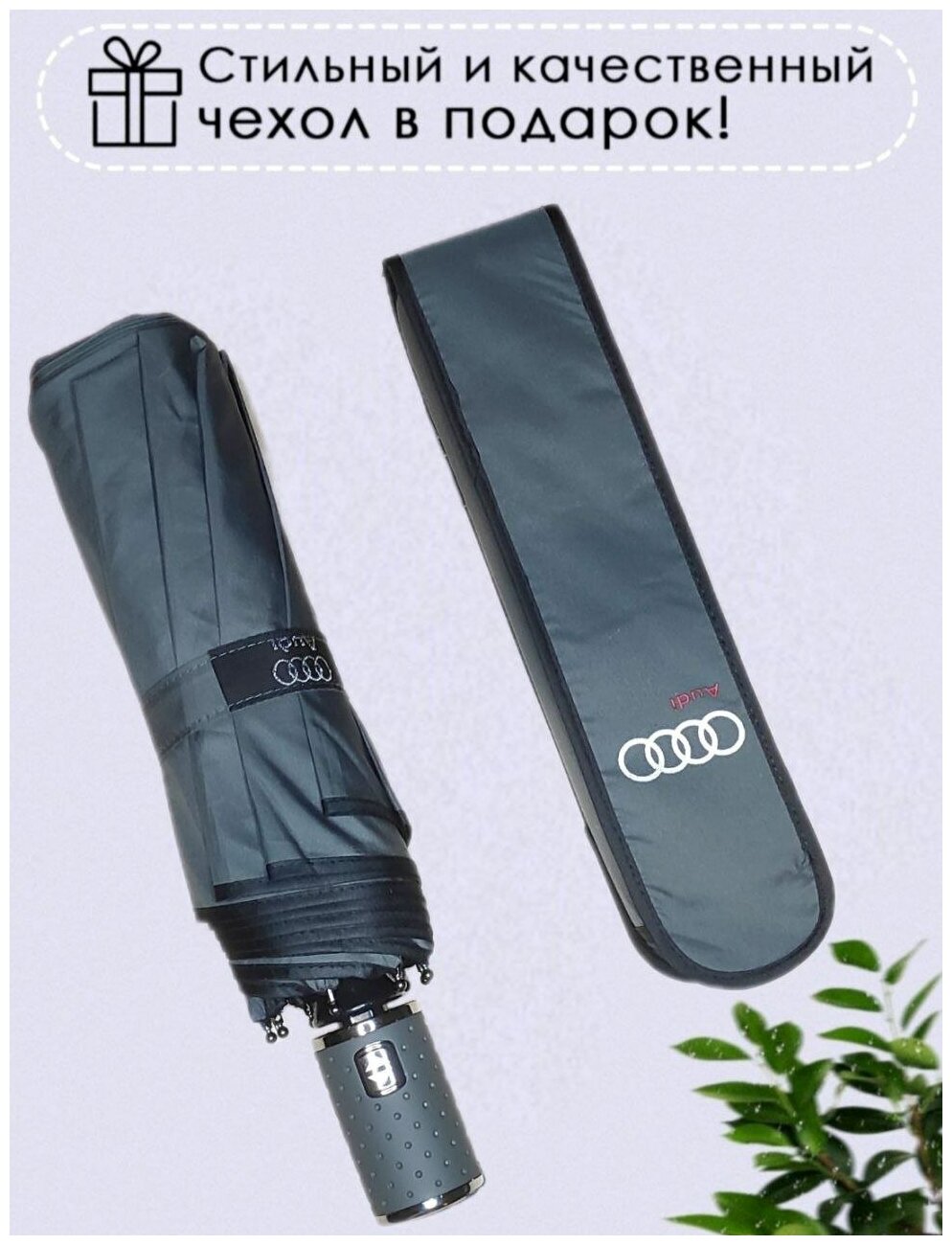 Зонт мужской AUDI полный автомат серый / зонтик Ауди с подарочной упаковкой интересное: