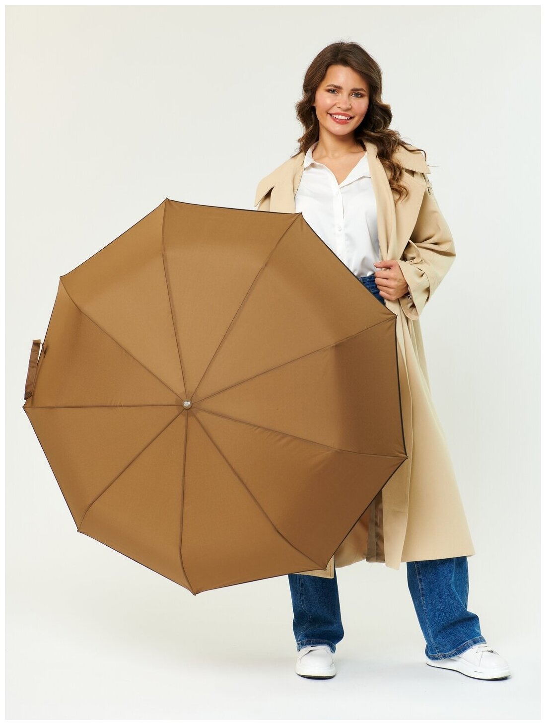 Зонт "Три Слона" женский №310-5, купол D=103 см, 10 спиц, суперавтомат бежево-черный