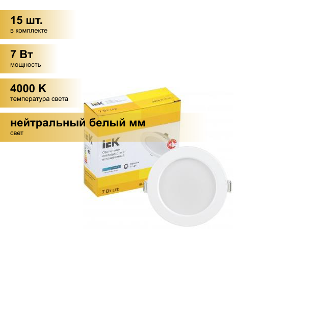 Светильник светодиодный IEK ДВО 1611, круг белый, 7 Вт, 4000 К, IP20