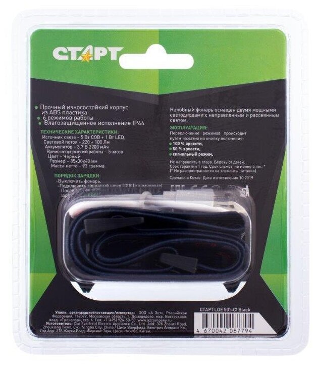 Старт Налобный светодиодный фонарь с прочным износостойким корпусом старт LOE 501-C1 Black