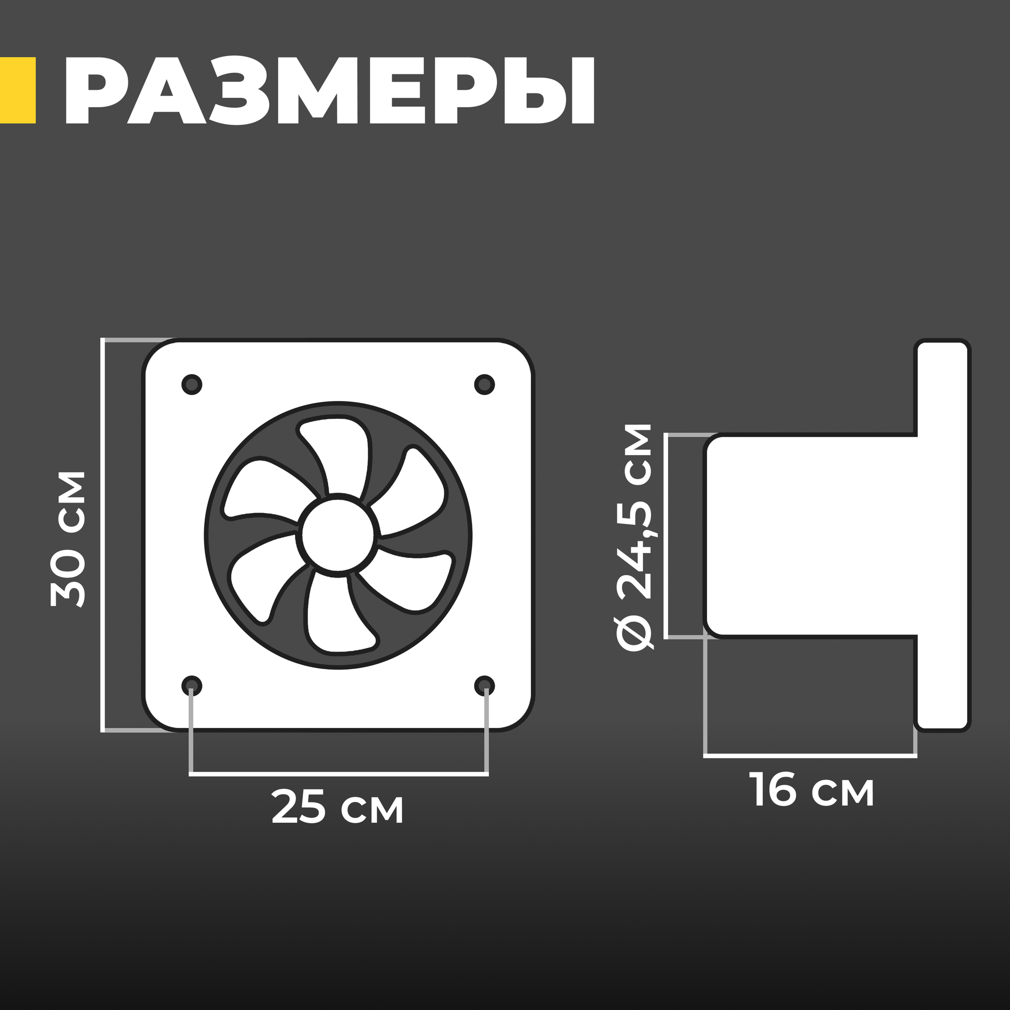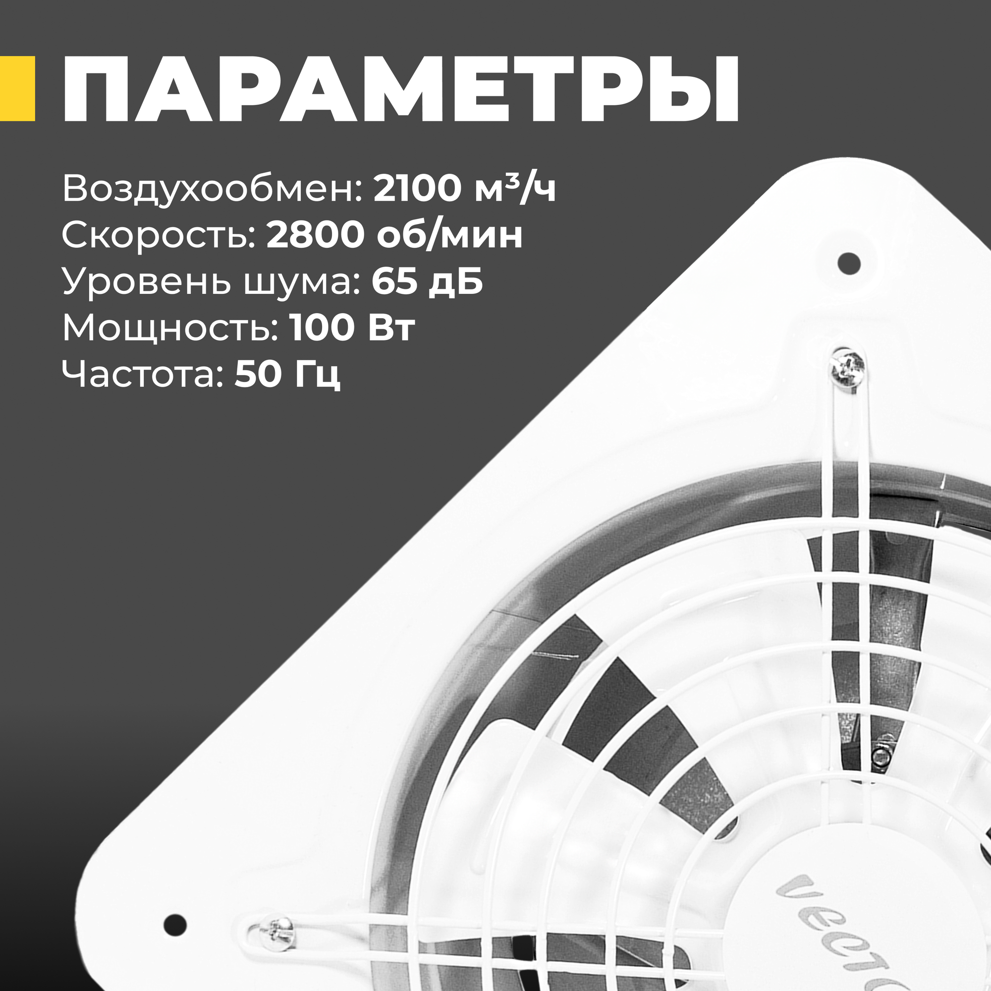 Вентилятор вытяжной промышленный Vector VBS250 с обратным клапаном, воздухообмен 1700 м3/ч, 90Вт, белый интересное: