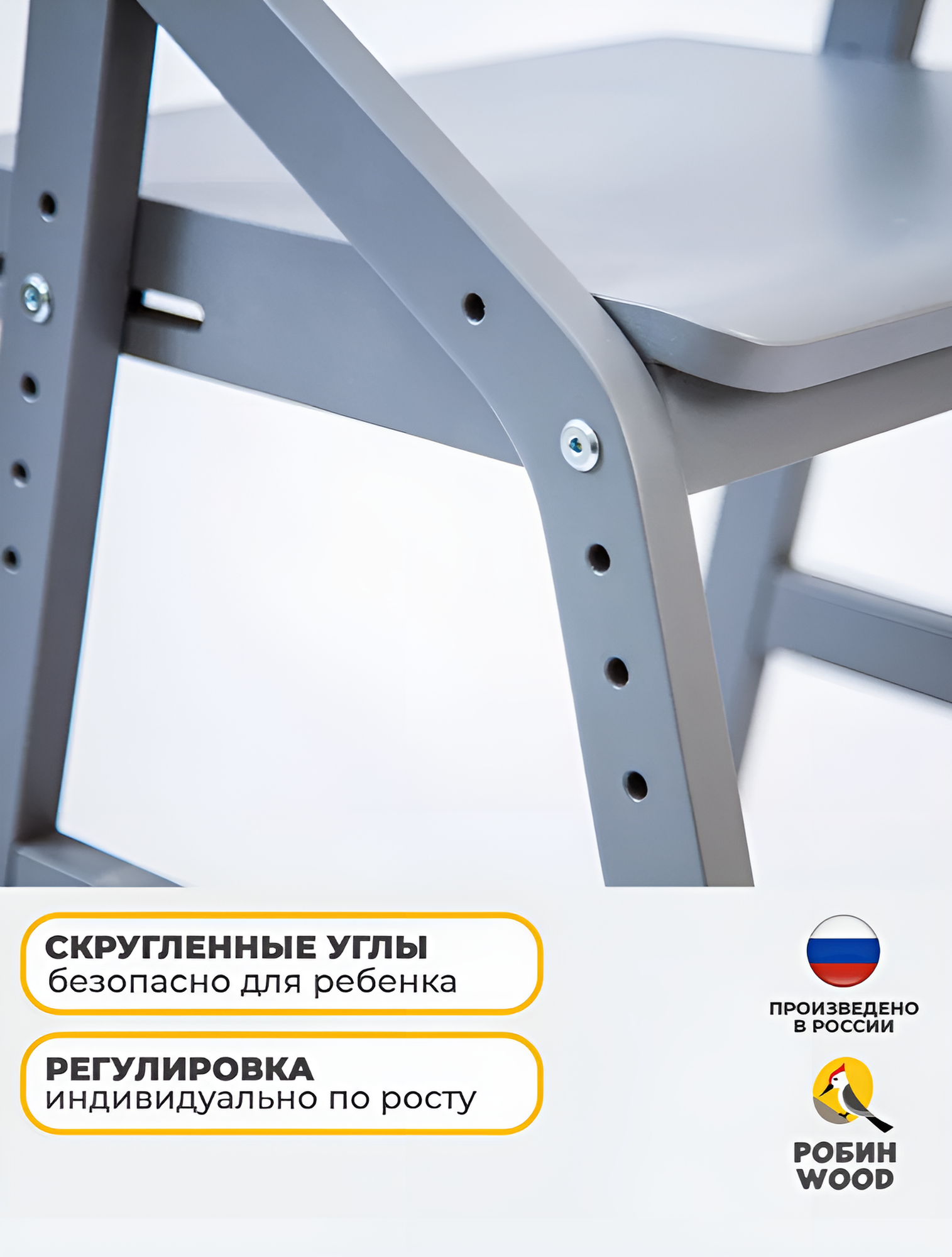 Стул детский регулируемый по высоте для школьника "Робин WOOD" Серый с чехлом Бриз интересное: