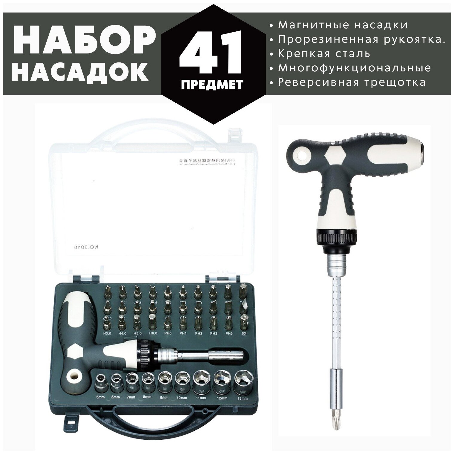 Набор бит и головок с трещёткой 40 шт интересное: