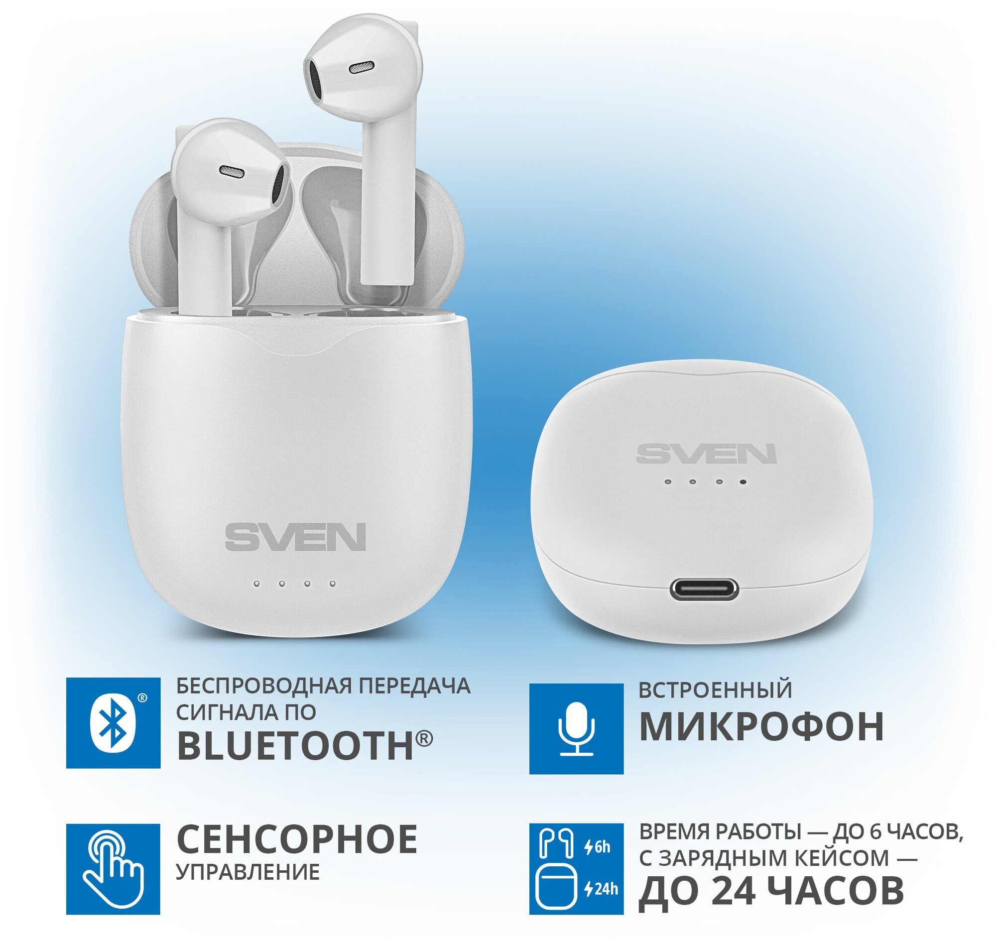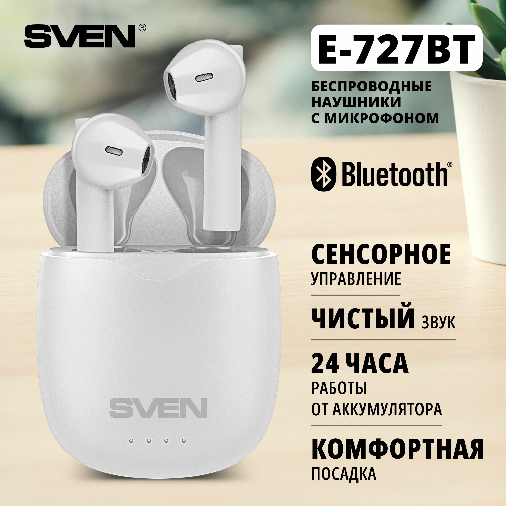 Наушники Sven E-727BT беспроводные, вкладыши, с микрофоном, TWS, Bluetooth, белый
