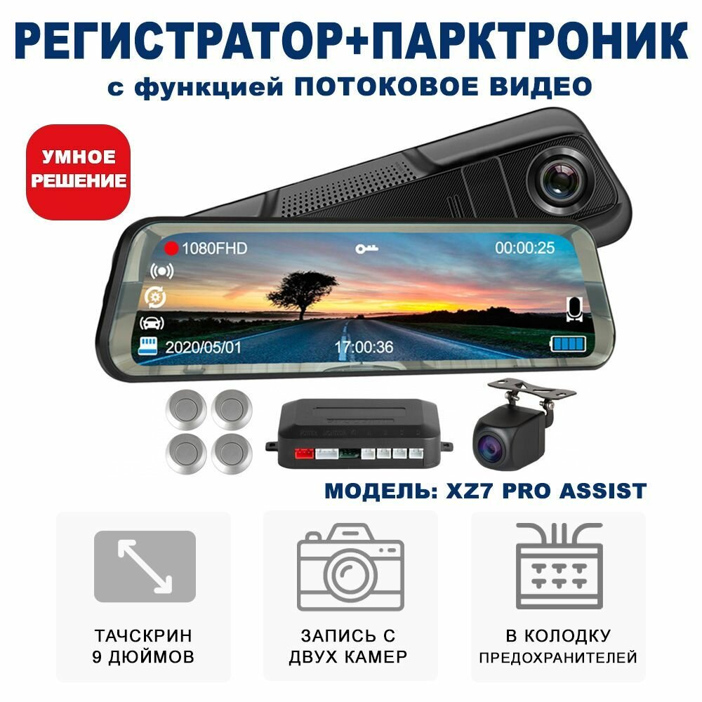 Видеорегистратор автомобильный зеркало с парктроником и двумя камерами / Видеорегистратор с камерой заднего вида Blackview xz7 ASSIST PRO черный