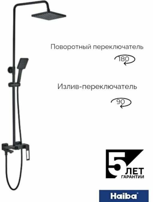 Душевая система, душевой гарнитур с верхним душем HAIBA HB24817-7 смесителем, поворотным изливом и ручной лейкой, черный интересное: