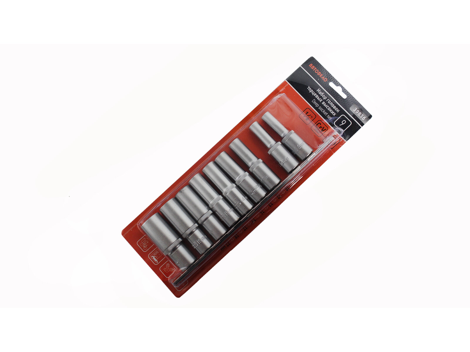 Набор головок глубоких 1/2" 9 пр. 6 гр. 8-22 мм на планке АвтоДело