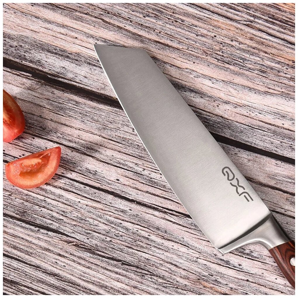 Поварской шеф-нож R-5228A — Кухонный нож QXF (в стиле «Кирицуке» из стали 50CR15MOV), длина лезвия 21 см. интересное: