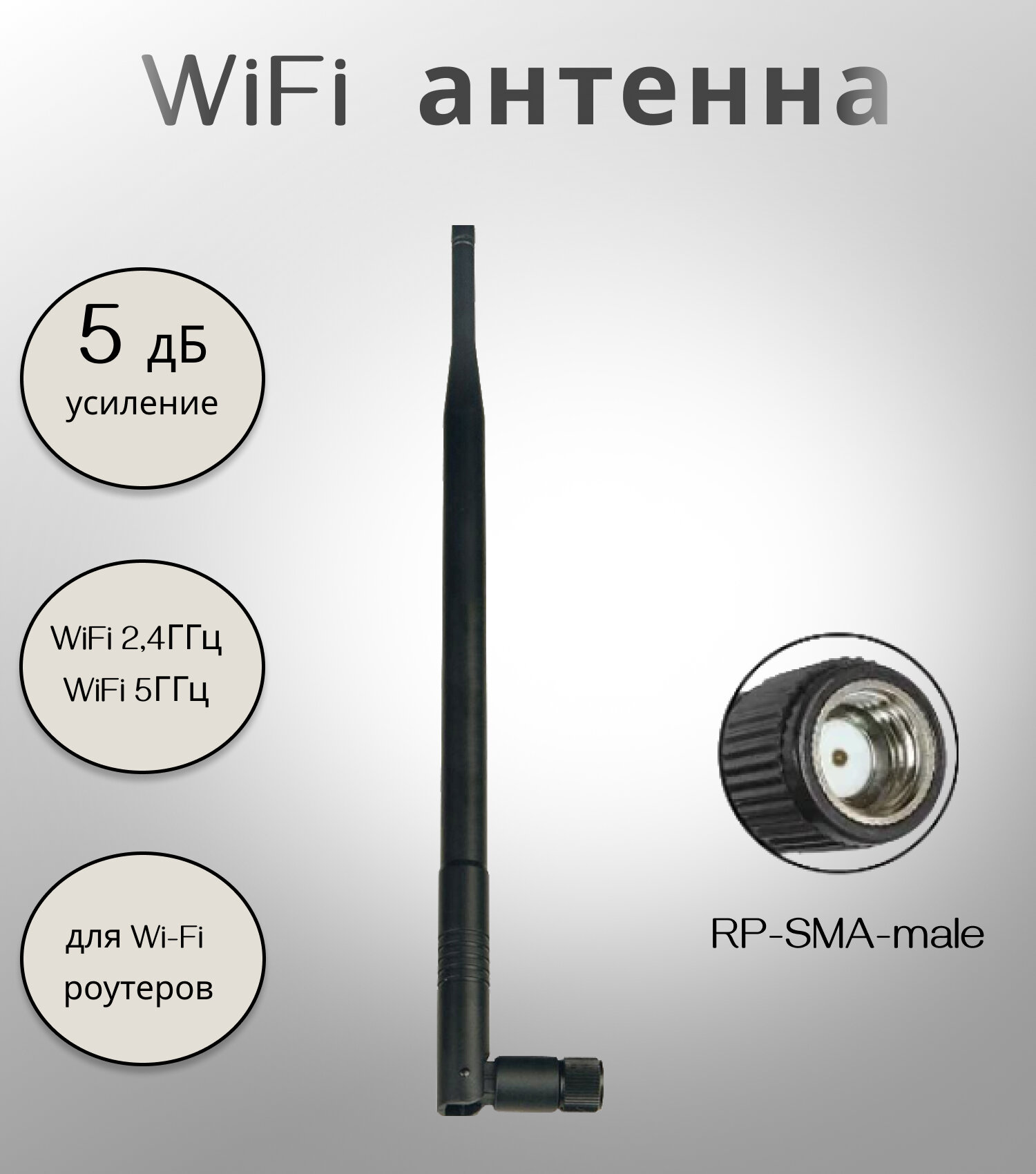 WiFi антенна для роутеров с усилением 5дБ KC5-2400, разъем RP-SMA-Male