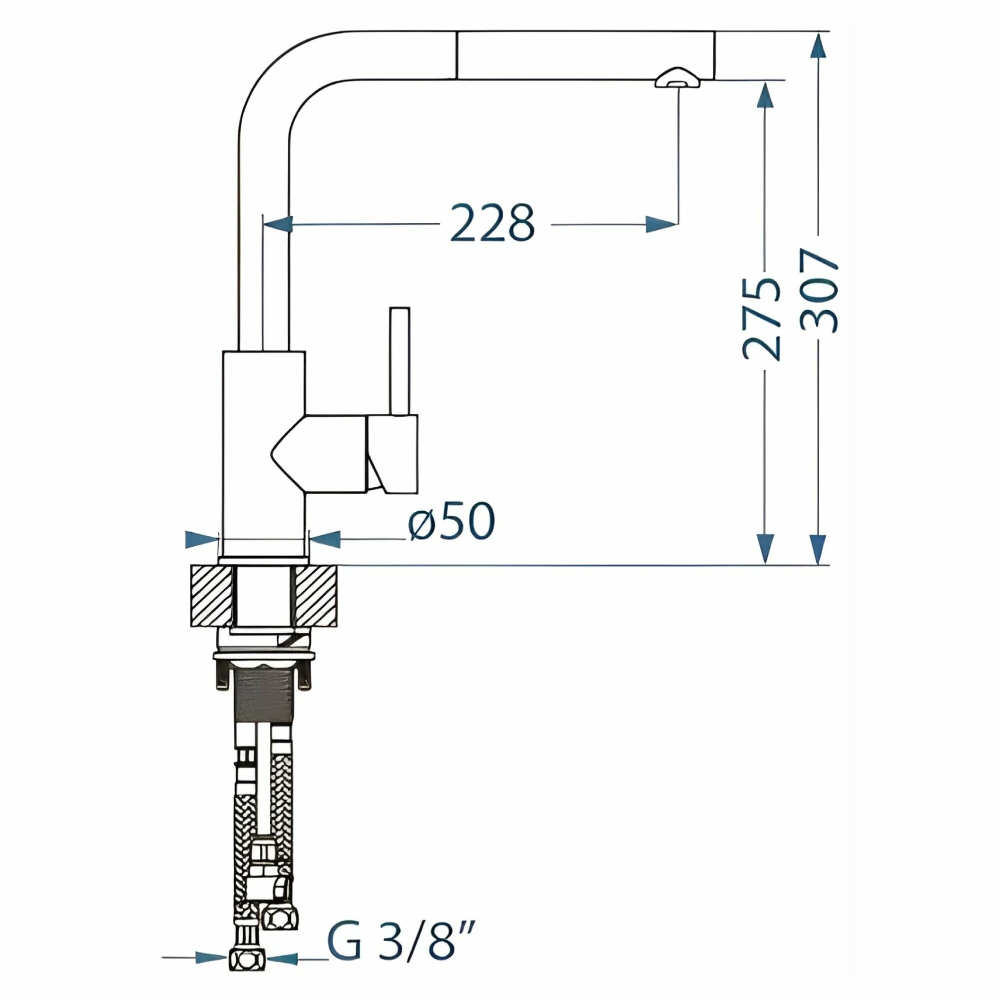 Смеситель для кухни черный матовый, с высоким выдвижным изливом ALVEUS ZEOS P BLACK MATT/черный матовый