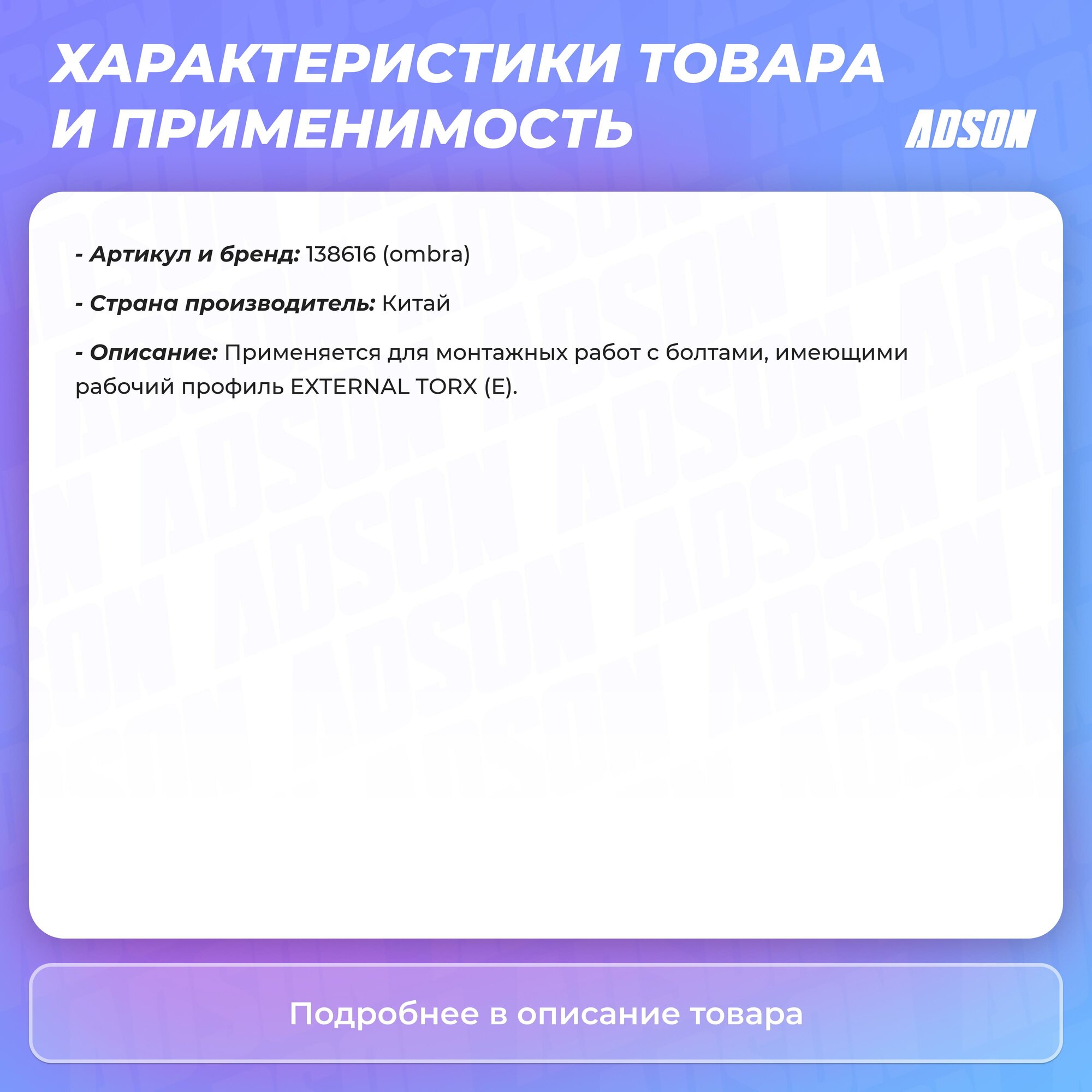 Головка Торцевая Torx E16 3/8 Ombra Арт. 138616 OMBRA арт. 138616