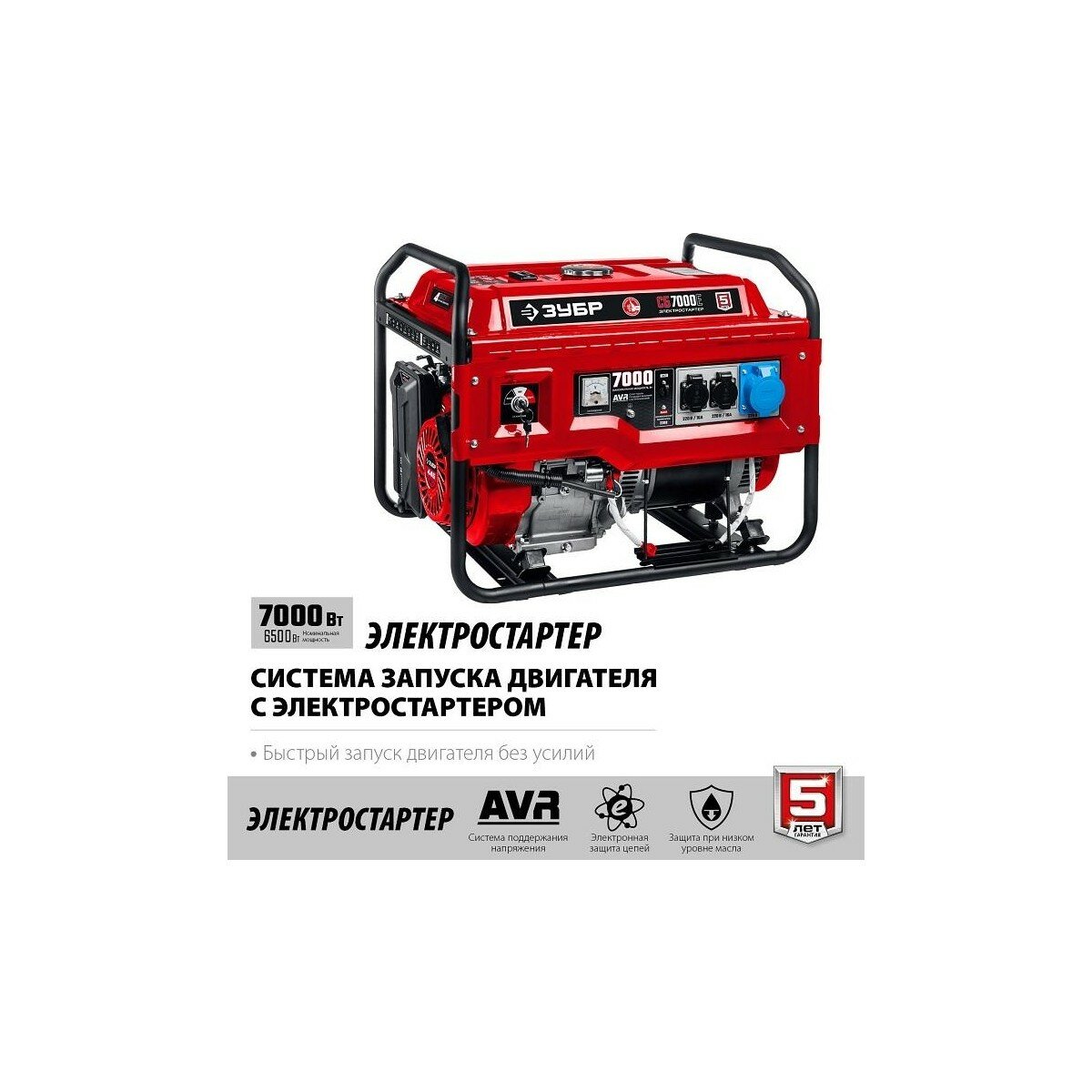ЗУБР 7000 Вт, бензиновый генератор с электростартером (СБ-7000Е)