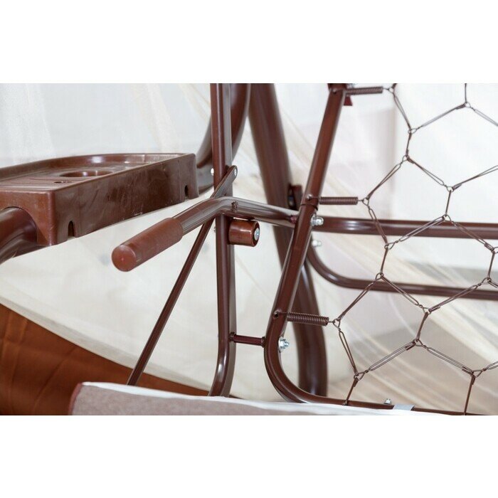 Качели садовые 3-х местные Мебельторг Палермо Премиум Каркас коричневый/Коричневый рис.круги