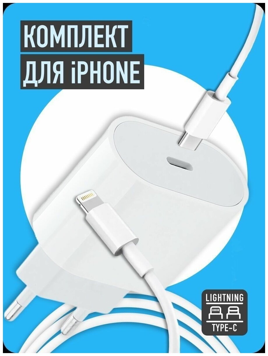 Зарядное устройство на смартфон 20В с кабелем lighting / Блок питания Power Delivery быстрая зарядка для телефона планшета выход type-c 20W iPhone интересное: