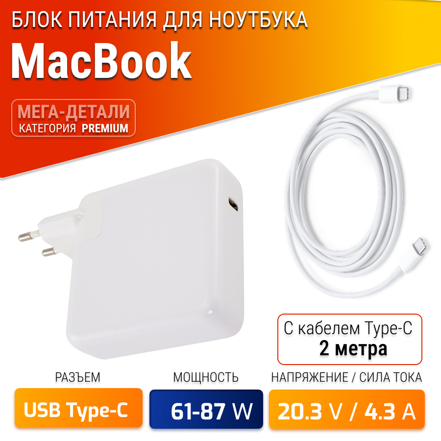 Блок питания (зарядка, сетевой адаптер) для ноутбука Apple MacBook Pro (20V 87W 4.3A штекер USB Type-C) интересное:
