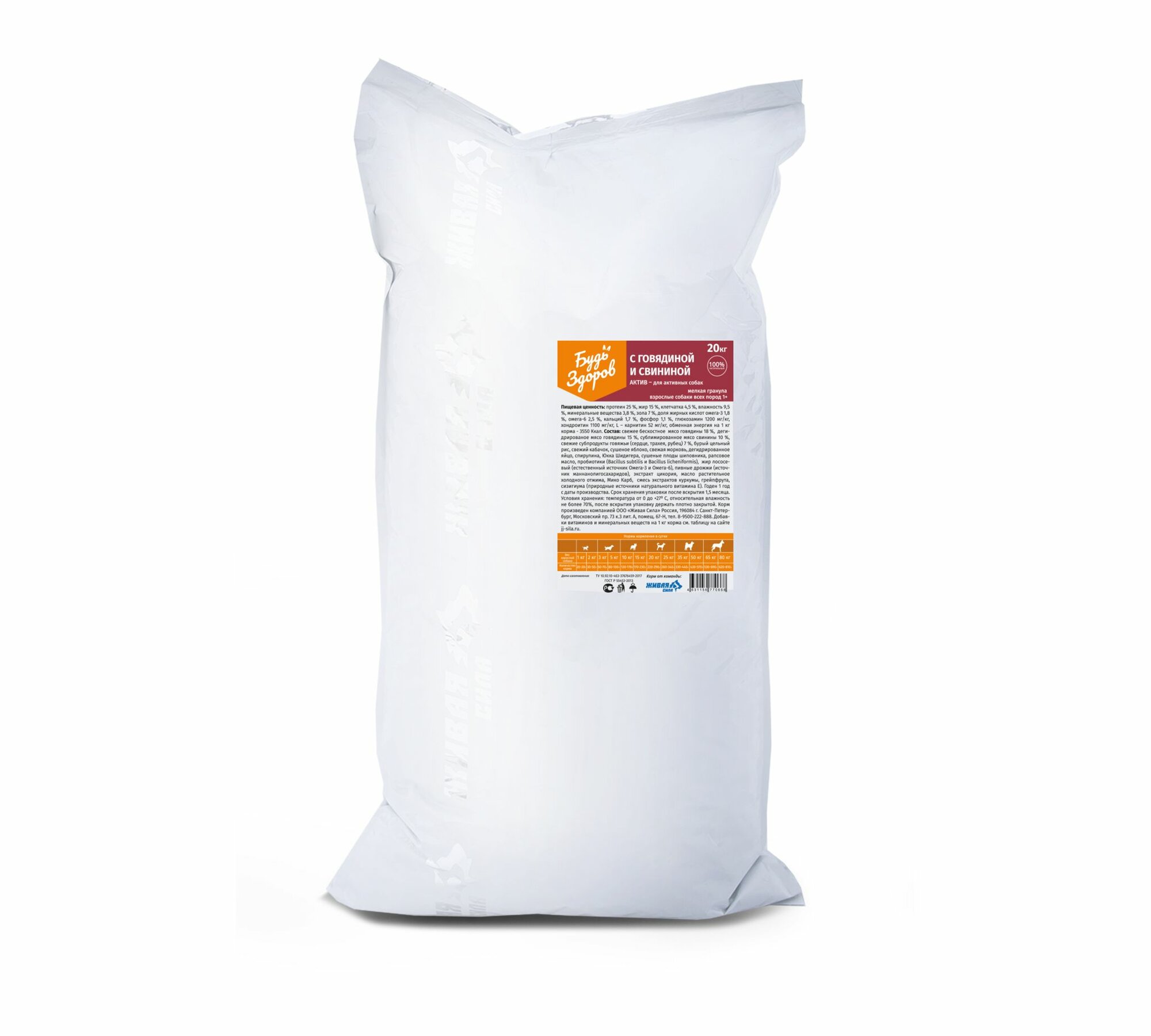 Корм Будь Здоров Актив (крупная гранула) для активных собак, с говядиной и свининой, 2.5 кг