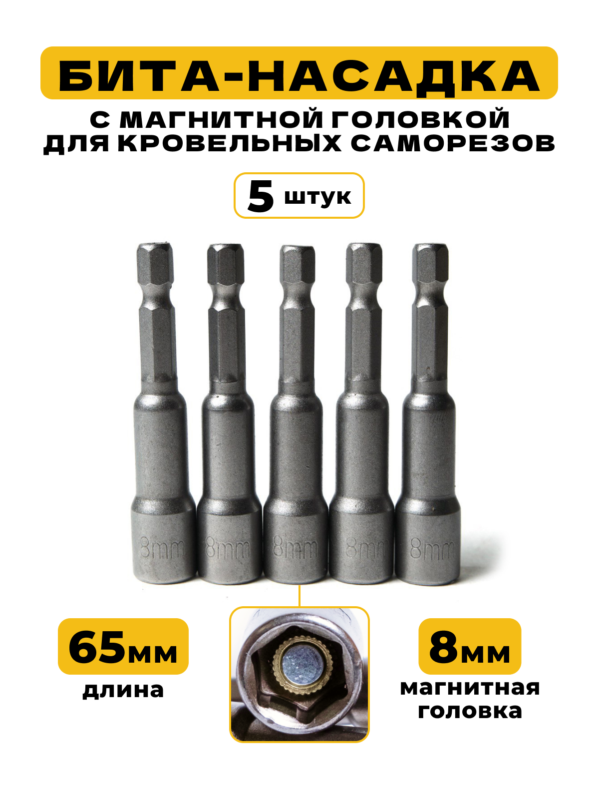 Бита-насадка/адаптер с магнитной торцевой головкой для кровельных саморезов,, 8 мм, длина 65 мм, 5 шт, Exprofil интересное: