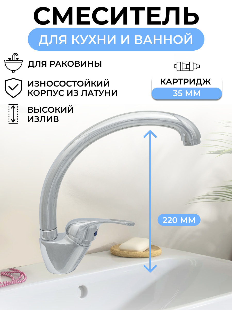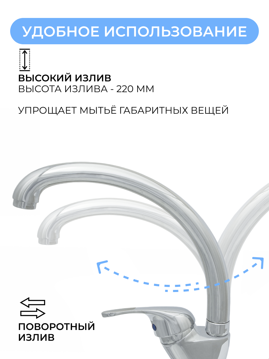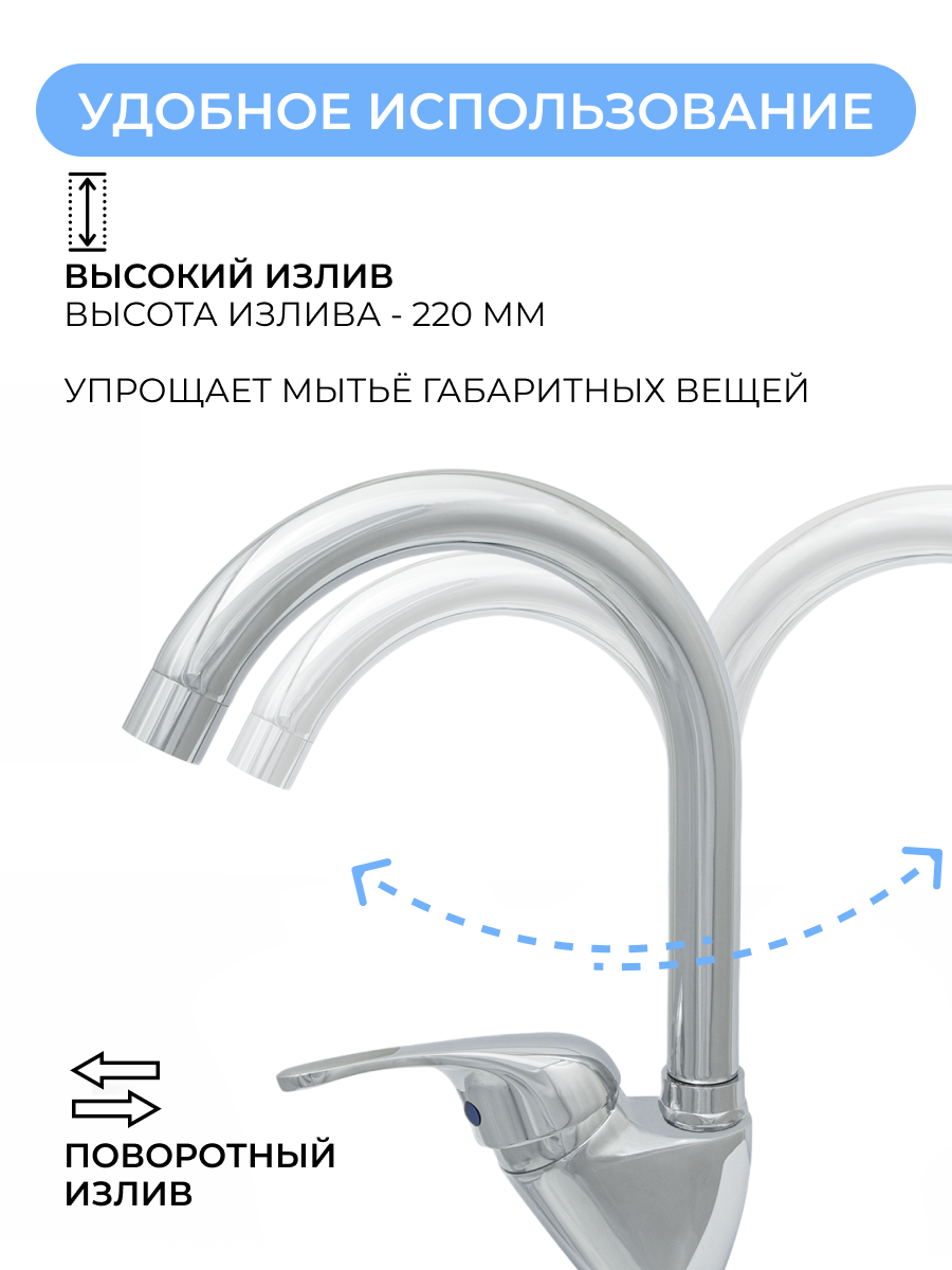 Смеситель для кухни Центр Сантехники Престиж ЦС-СМ 27/2Г D35 М42, высокий излив, хром интересное: