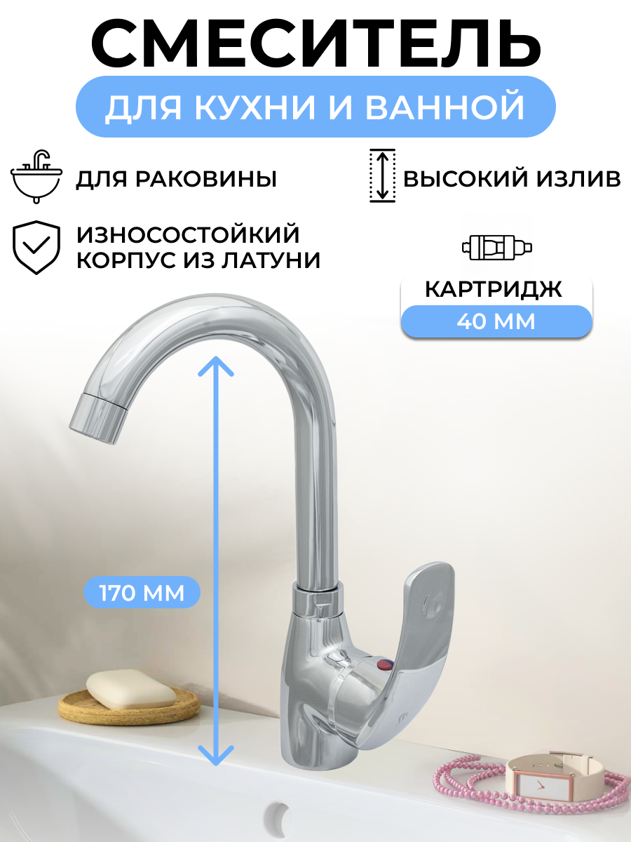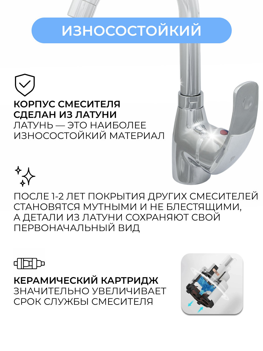 Смеситель для кухни Центр Сантехники Престиж ЦС-СМ 27/22Г М42, 170 мм, однорычажный, хром интересное: