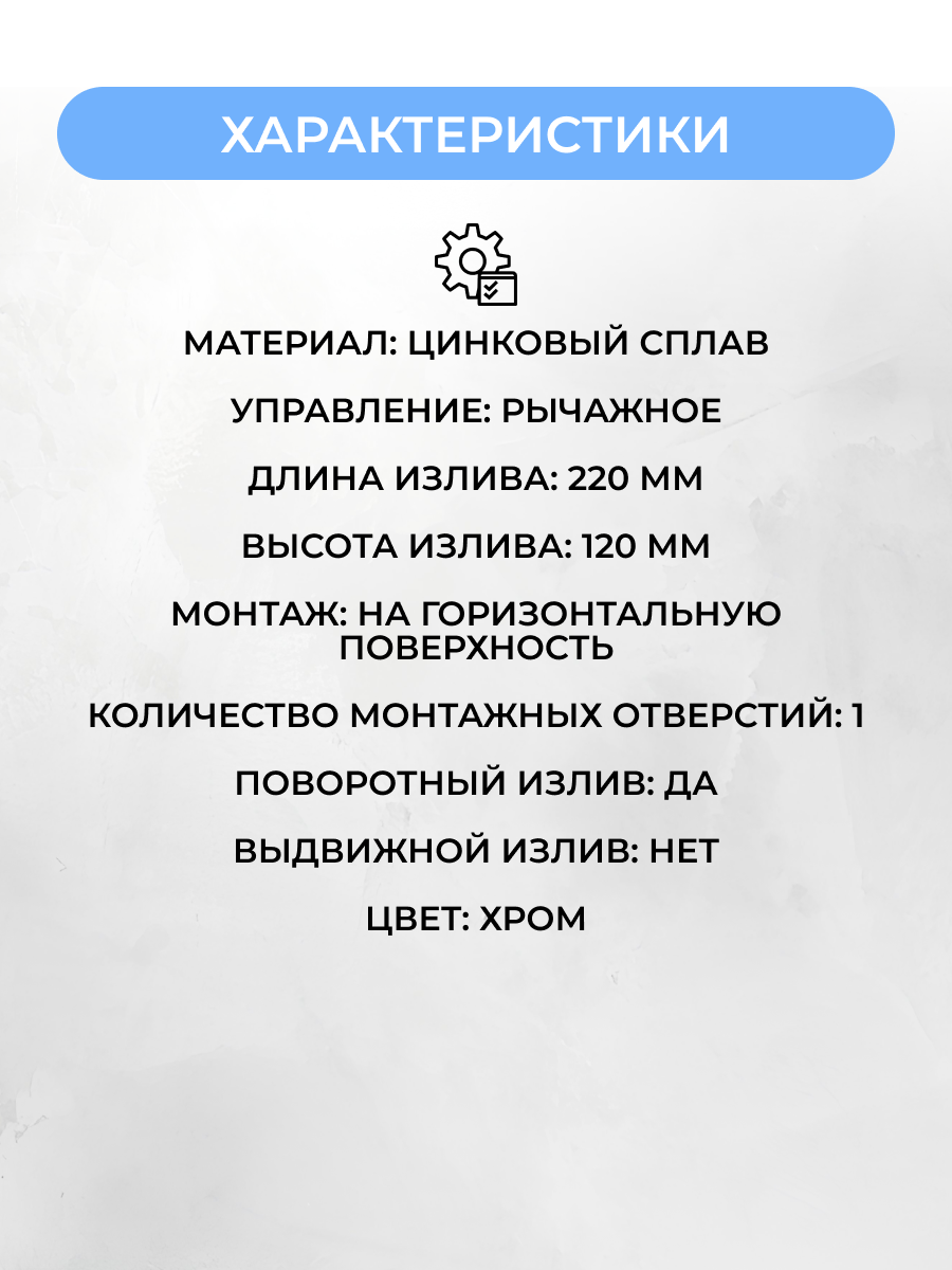 | Длина излива | 220 мм |