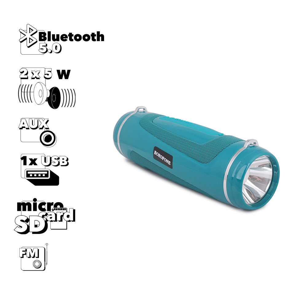 Купить Bluetooth колонка BOROFONE BR7 Empyreal Sports BT 5.0, 5Wx2, AUX/microSD/USB/FM (бирюзовая)