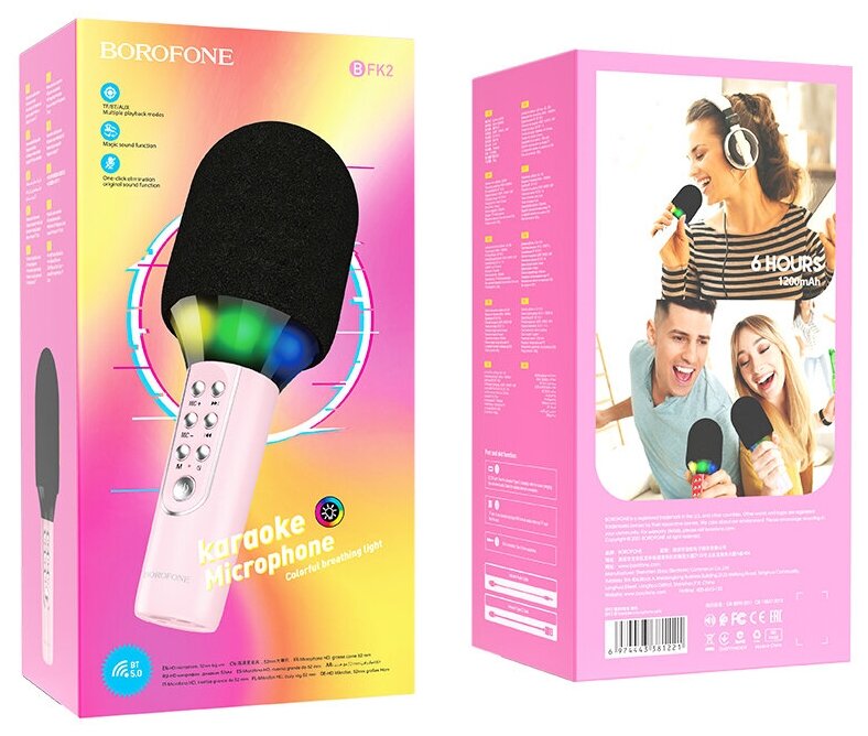 Купить Borofone / BFK2 Elf / Колонка-микрофон розовая