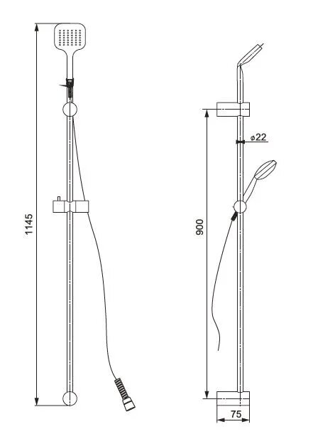 | Дополнительная информация | высота стойки для душа: 900 мм; диаметр душевой лейки: 124 мм |