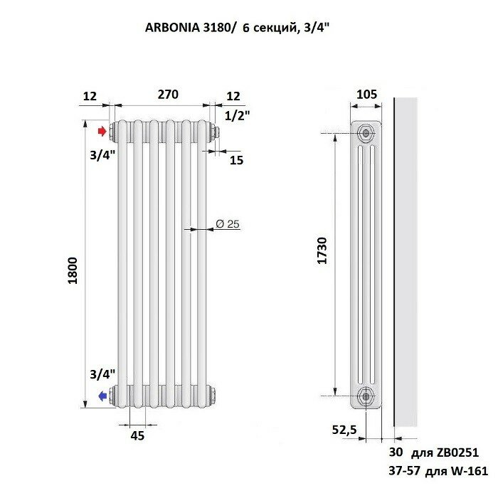 Стальной трубчатый радиатор Arbonia 3180, 06 секций, 3/4", с боковой подводкой, цвет белый Ral 9016 интересное: