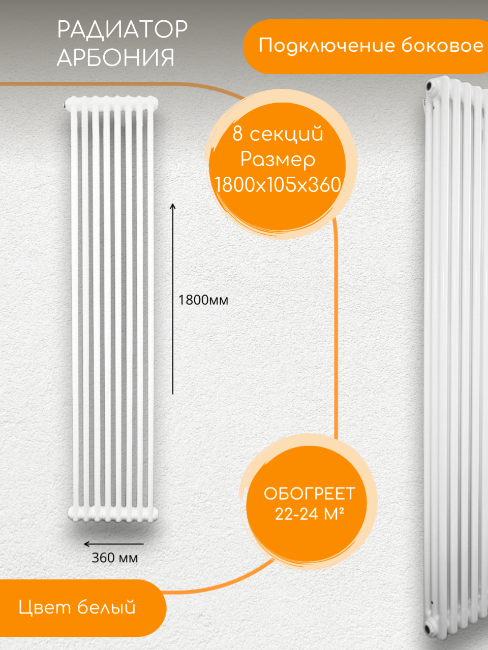 Стальной трубчатый Радиатор Arbonia 3180, Боковое подключение; Количество секций: 8 Цвет: Белый интересное: