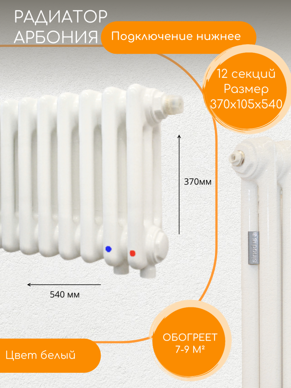 Стальной трубчатый Радиатор Arbonia 3037 Нижнее подключение; Количество секций:12 Цвет: Белый интересное: