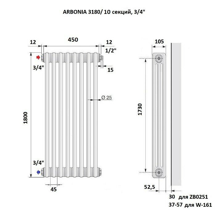 Стальной трубчатый радиатор Arbonia 3180, 10 секций, 3/4", с боковой подводкой, цвет белый Ral 9016 интересное: