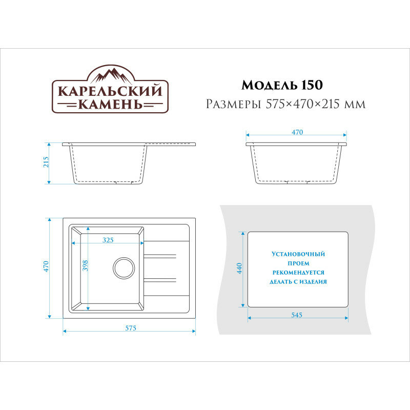 Кухонная мойка Карельский камень модель 150 (575*470) Q6 Слоновая кость