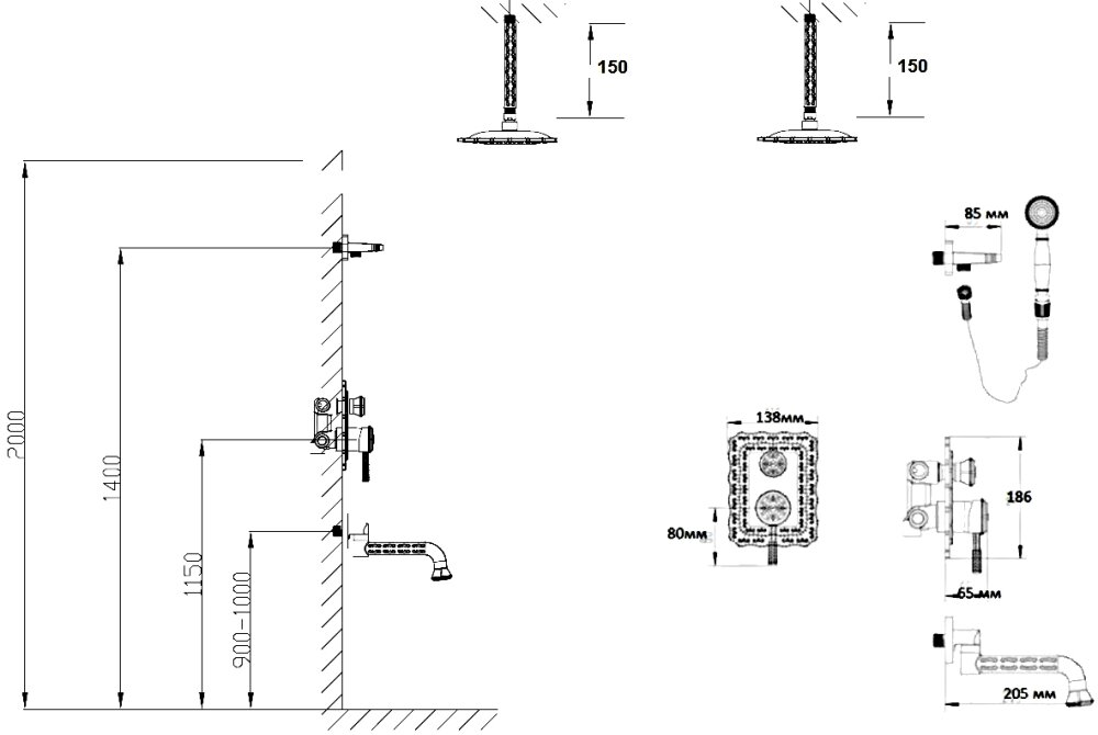 | Комплектация | верхний душ / излив для набора воды / шланг |