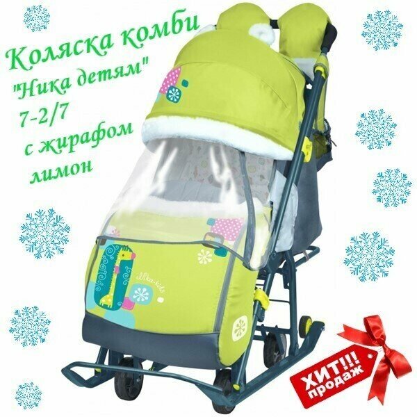 Санки-коляска Ника НД-7-2 Коллаж-жираф лимонный интересное:
