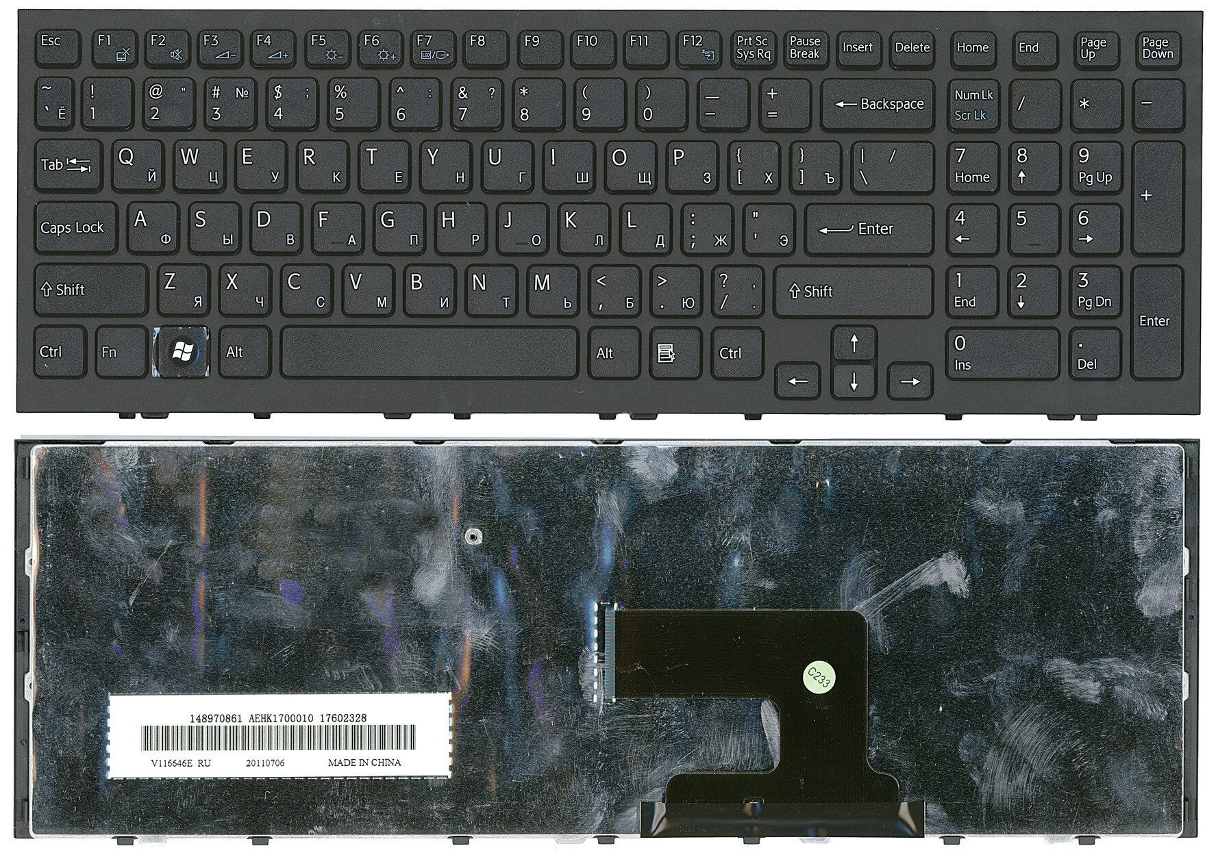 Купить Клавиатура для ноутбука Sony Vaio VPC-EH1S1R/B черная с рамкой