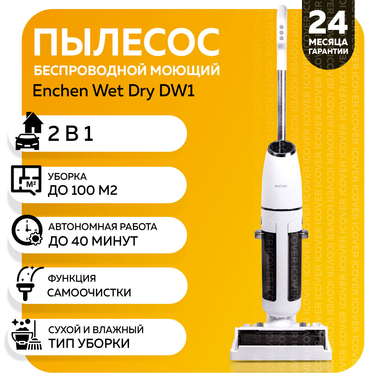 Моющий вертикальный пылесос / полотер Enchen Cordless Wet Dry DW1 (White) интересное: