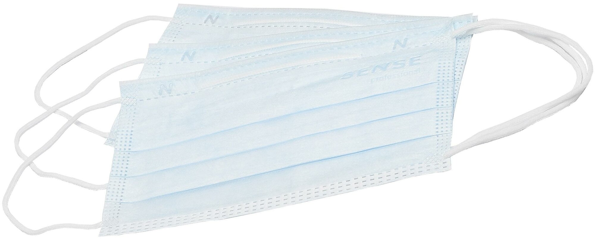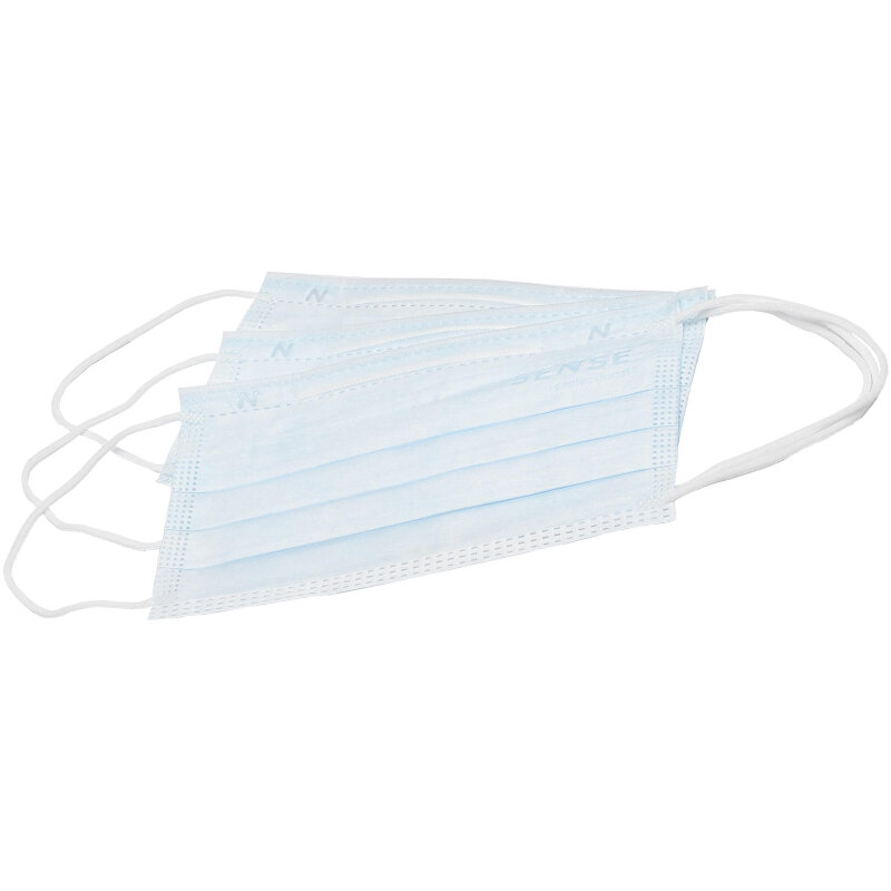 Маска защитная одноразовая 3-слойная Sense, голубая на резинке, 50 шт.