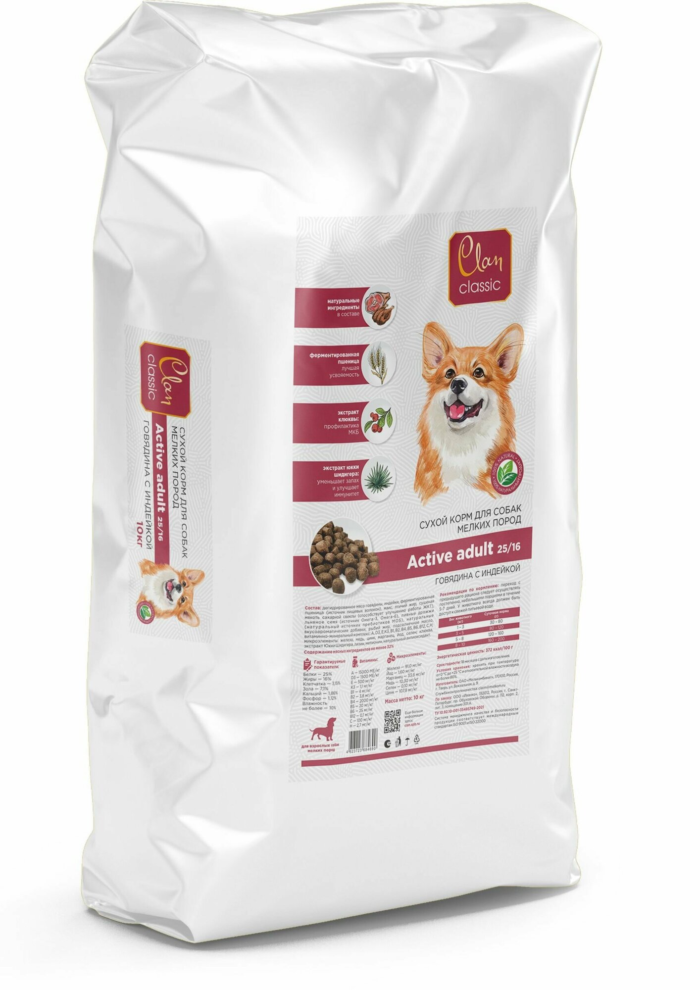 CLAN CLASSIC ACTIVE 25/16 для активных взрослых собак маленьких пород с говядиной и индейкой (10 кг)