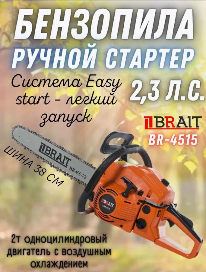 Купить Бензопила BRAIT 4515 ( 0,325 1,5 64зв. 2,5л.с.)