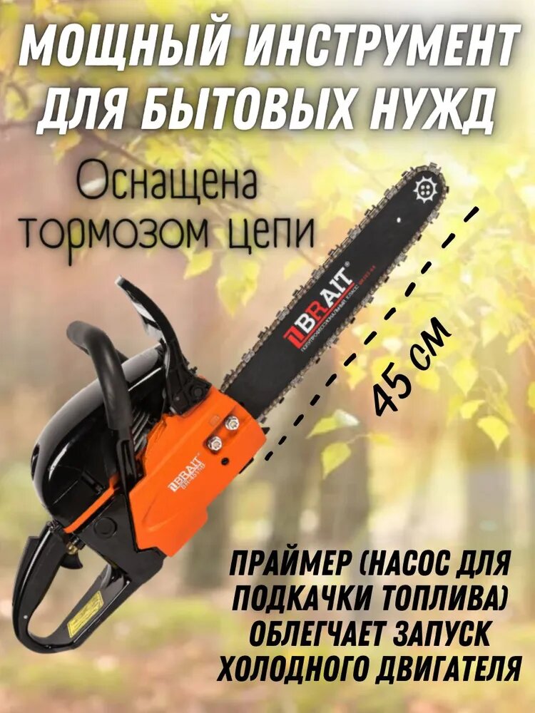 Бензопила BRAIT 4518В (18', 0,325, 1,5 72 зв. 2,5л. с. стартер металлический, легкий пуск)