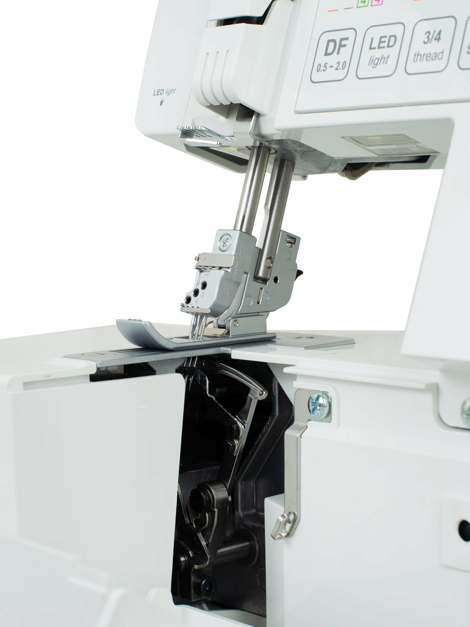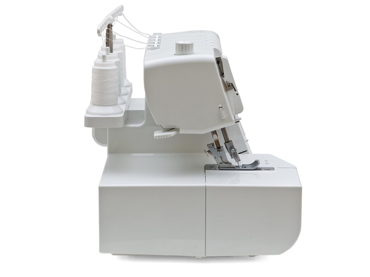Возможна обработка разных видов трикотажной ткани, удобство использования. Приятный дизайн, в процессе работы, машина стоит на столе, никуда не съезжая. Строчка получается ровной, никакой кривизны