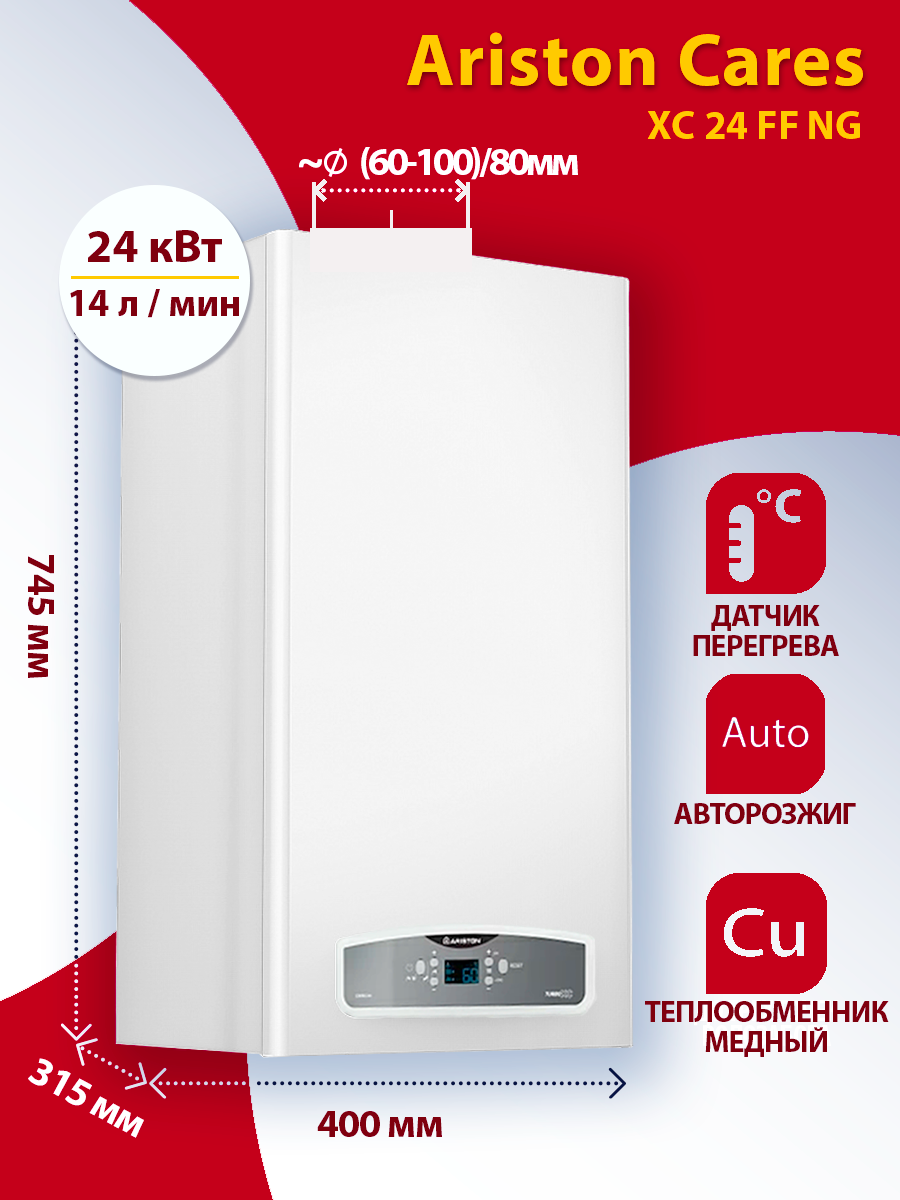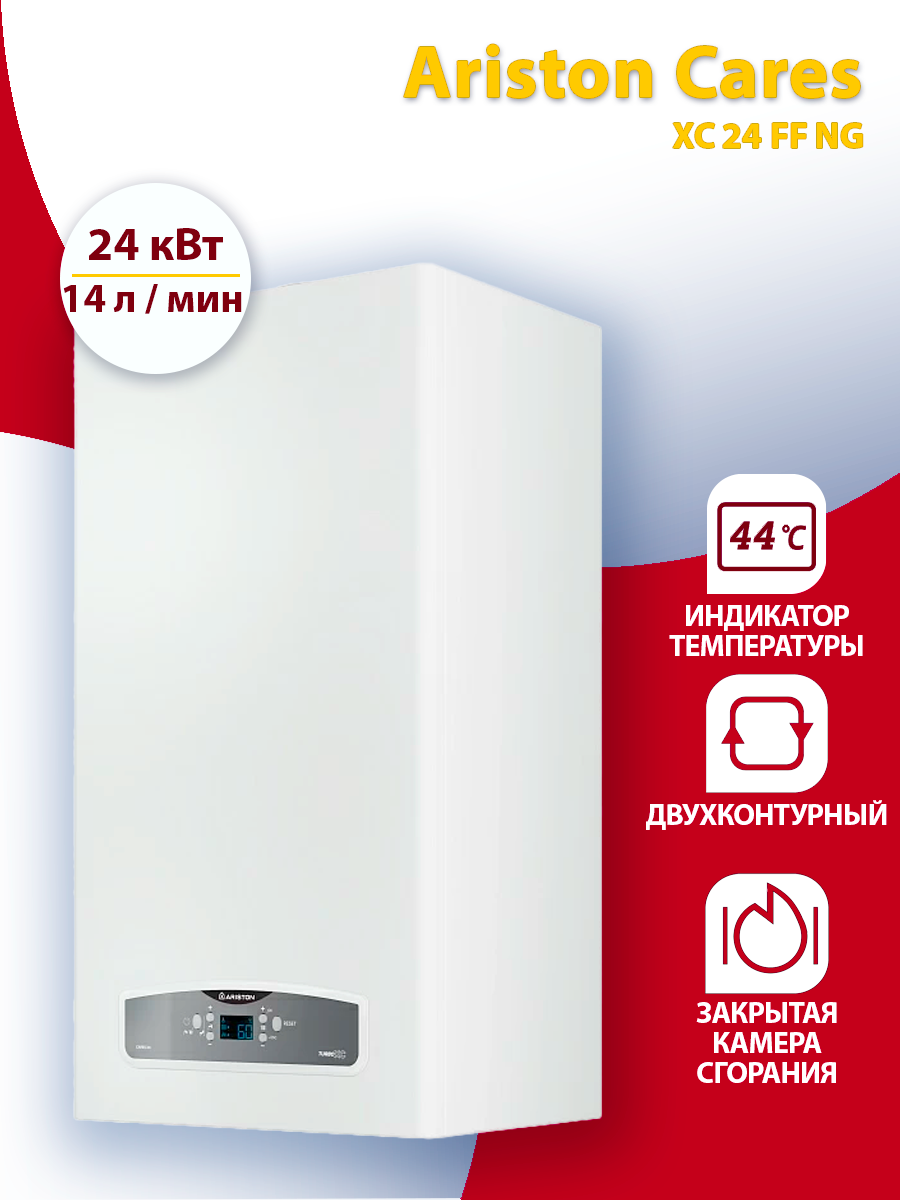 Газовый котел ARISTON CARES XC 24 FF NG двухконтурный настенный закрытая камера сгорания