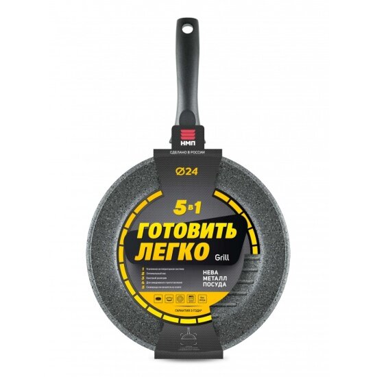 Купить Сковорода-гриль Нева Металл Посуда НМП "Готовить легко" Stone Gray 24 см, GL0424