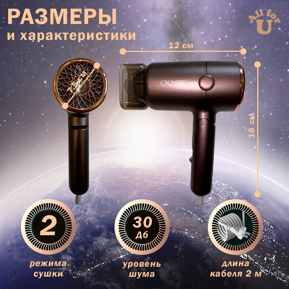 | Дополнительная информация | фен оснащён складной ручкой, поддерживает постоянную температуру воздуха, низкий уровень шума, не пересушивает волосы |